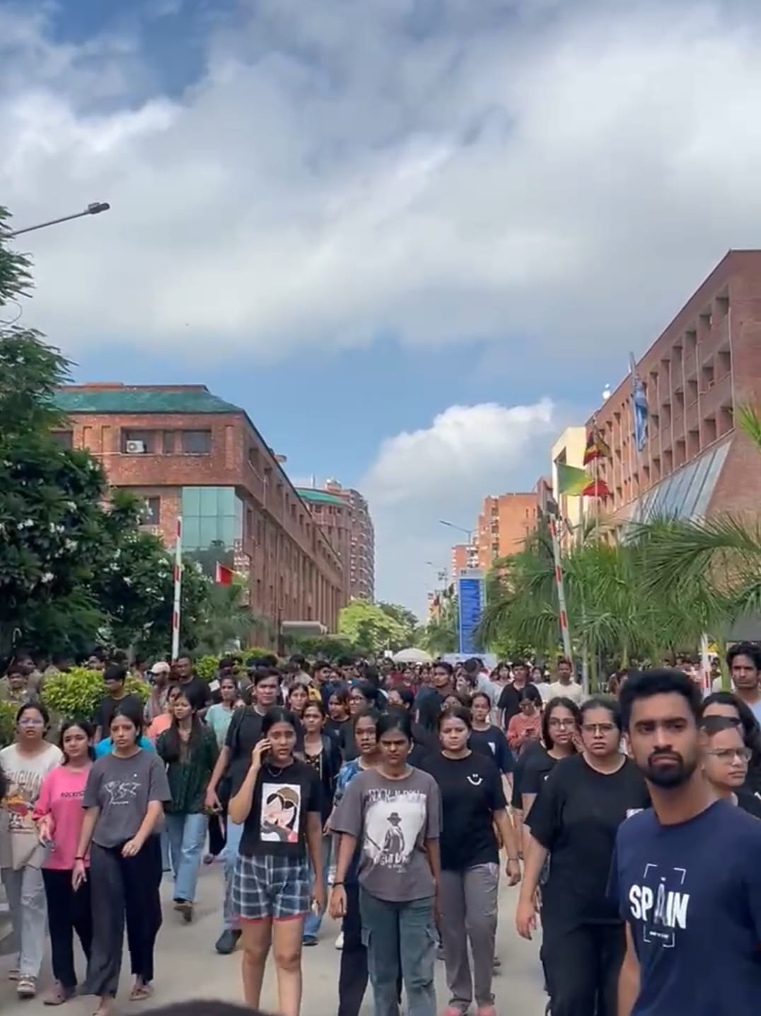 द न्‍यूज गली, ग्रेटर नोएडा: नॉलेज पार्क स्थित शारदा यूनिवर्सिटी में पढ़ने वाली एक छात्रा ने देर रात फांसी लगाकर आत्‍महत्‍या कर ली। छात्रा ने सुसाइट नोट लिखा है जिसमें उसने यूनिवर्सिटी के दो प्रोफेसरों द्वारा मानसिक रूप से परेशान किए जाने के बाद आत्‍महत्‍या की है। घटना के बाद मौके पर छात्रों की भारी भीड़ जुट गई। इस दौरान छात्रों ने जमकर हंगामा किया। यूनिवर्सिटी में छात्रों के हंगामे को देखते हुए भारी पुलिस फोर्स तैनात कर दी गई है। घटना की सूचना मृतक छात्रा के परिजन को देने के बाद पुलिस ने शव को पोस्‍टमार्टम के लिए भेज दिया।