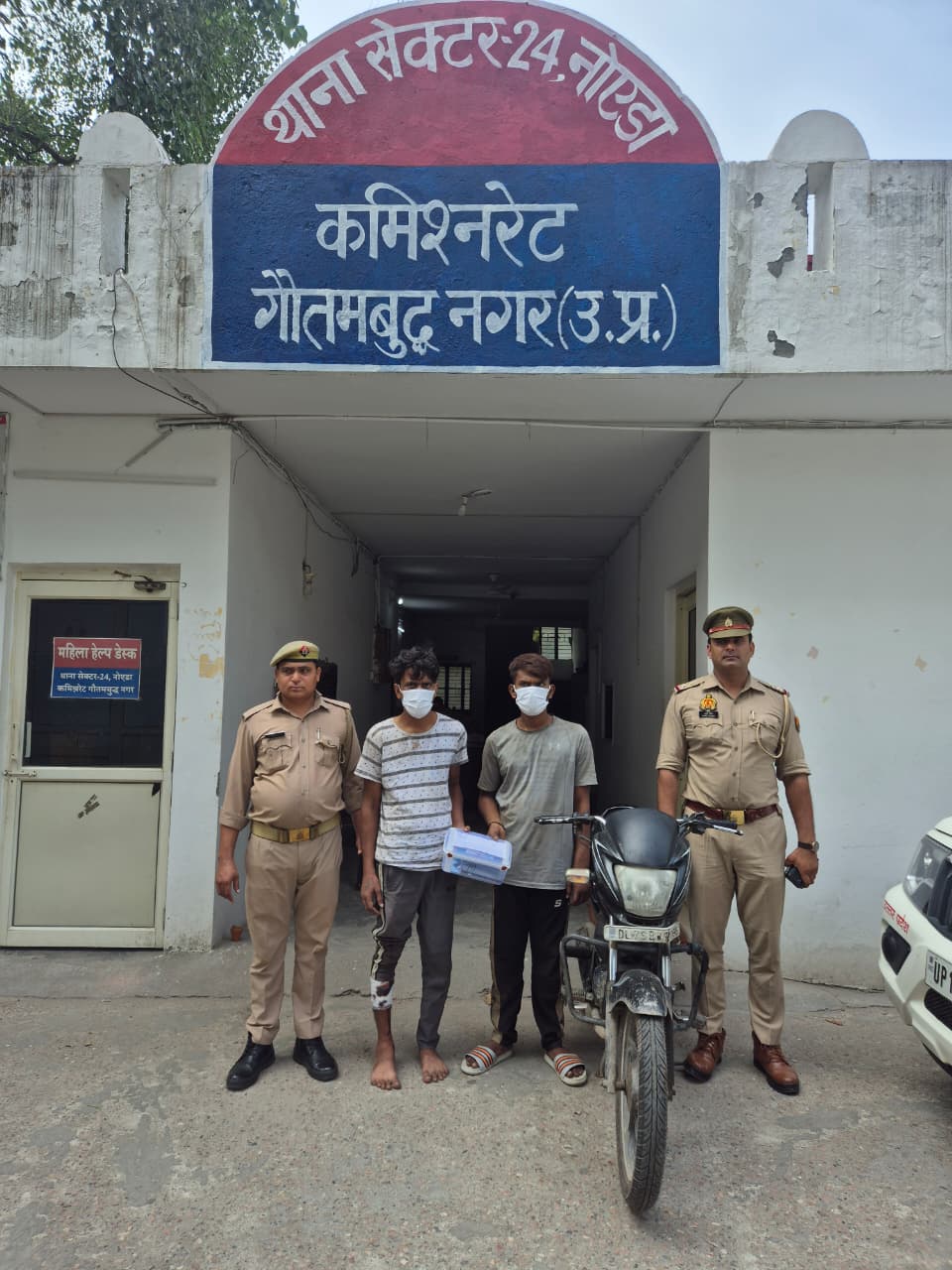 द न्यूज गली, नोएडा : थाना सेक्टर-24 क्षेत्र में चैन स्नैचिंग की वारदात को अंजाम देने आए दो शातिर लुटेरे पुलिस और जनता की सूझबूझ से दबोच लिए गए। घटना गुरुवार शाम पी-ब्लॉक, सेक्टर-11 की मार्केट के पीछे की है, जहां एक महिला से चैन छीनने की कोशिश की गई।