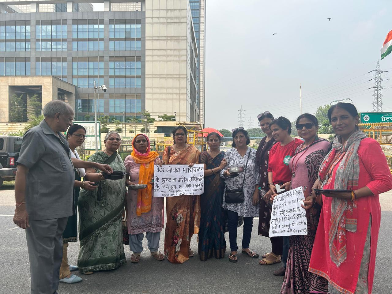 द न्यूज गली, ग्रेटर नोएडा: ग्रेटर नोएडा प्राधिकरण में बुधवार को ऐसा नजारा दिखा कि वहां आने वाले लोगों के बीच चर्चाओं का बाजार गर्म हो गया, सभी लोग आश्चर्यचकित थे। नजारा था शिक्षित व टिप-टॉप महिलाओं के द्वारा भीख मांगने का। खास बात भीख में महिलाएं सिर्फ एक रुपए ही मांग रही थी। काफी लोगों ने अधिक पैसा देने की पेशकश की लेकिन उन्होंने स्वीकार नहीं किया। बाद में प्राधिकरण अधिकारियों से महिलाओं की वार्ता हुई। आश्वासन मिला कि उनकी मांग को आगामी बोर्ड बैठक में रखा जाएगा, जिसके बाद महिलाओं ने अपना अनोखा प्रदर्शन समाप्त किया। महिलाओं ने चेतावनी दी है यदि उनकी मांग पूरी नहीं होती है तो दोबारा प्रदर्शन करेंगी।