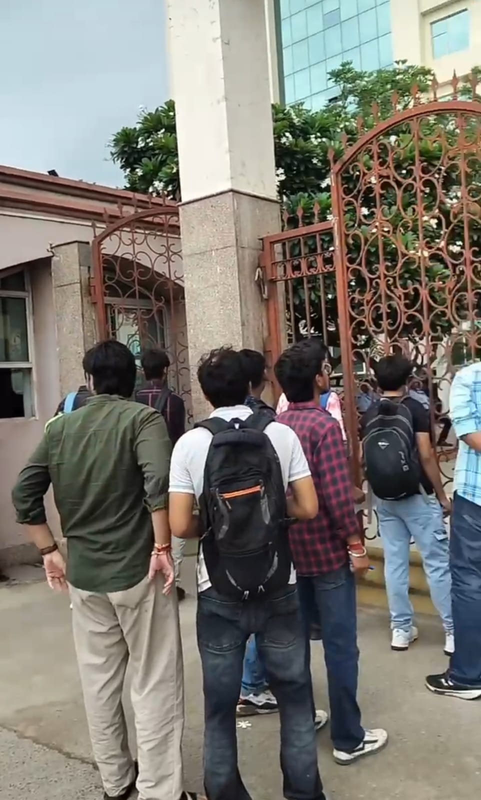सेमेस्‍टर परीक्षा के लिए केसीसी कॉलेज के छात्रों का सेंटर जीएल बजाज कॉलेज गया है। जारी वीडि़यो में दिखा रहा है कि लेट होने के कारण कई छात्र कॉलेज के गेट पर निराश खड़े हैं। एक छात्र का कहना है कि परीक्षा के लिए जाने के दौरान एक्‍सीडेंट हो गया था। हाथ और पैर में चोट लगी, साथ ही बारिश भी हो रही थी। पांच मिनट लेट पहुंचने पर जीएल बजाज कॉलेज के गेट पर खड़े सर से प्रवेश देने का आग्रह किया गया, उन्‍होंने मना कर दिया और कहा कि जो करना है कर लो। छात्र का कहना है कि बाद में गार्डों से भी आग्रह किया गया, आरोप है कि उन्‍होंने बदतमीजी की। शिक्षा जगत के विशेषज्ञों का कहना है छात्रों को परीक्षा शुरू होने से आधा घंटा पहले बुलाया जाता है। परीक्षा शुरू होने के बाद प्रवेश देने का नियम नही है, लेकिन कई बार मानवीय आधार व परिस्थितियों को देखते हुए परीक्षा शुरू होने से पहले तक छात्रों को प्रवेश दे दिया जाता है।