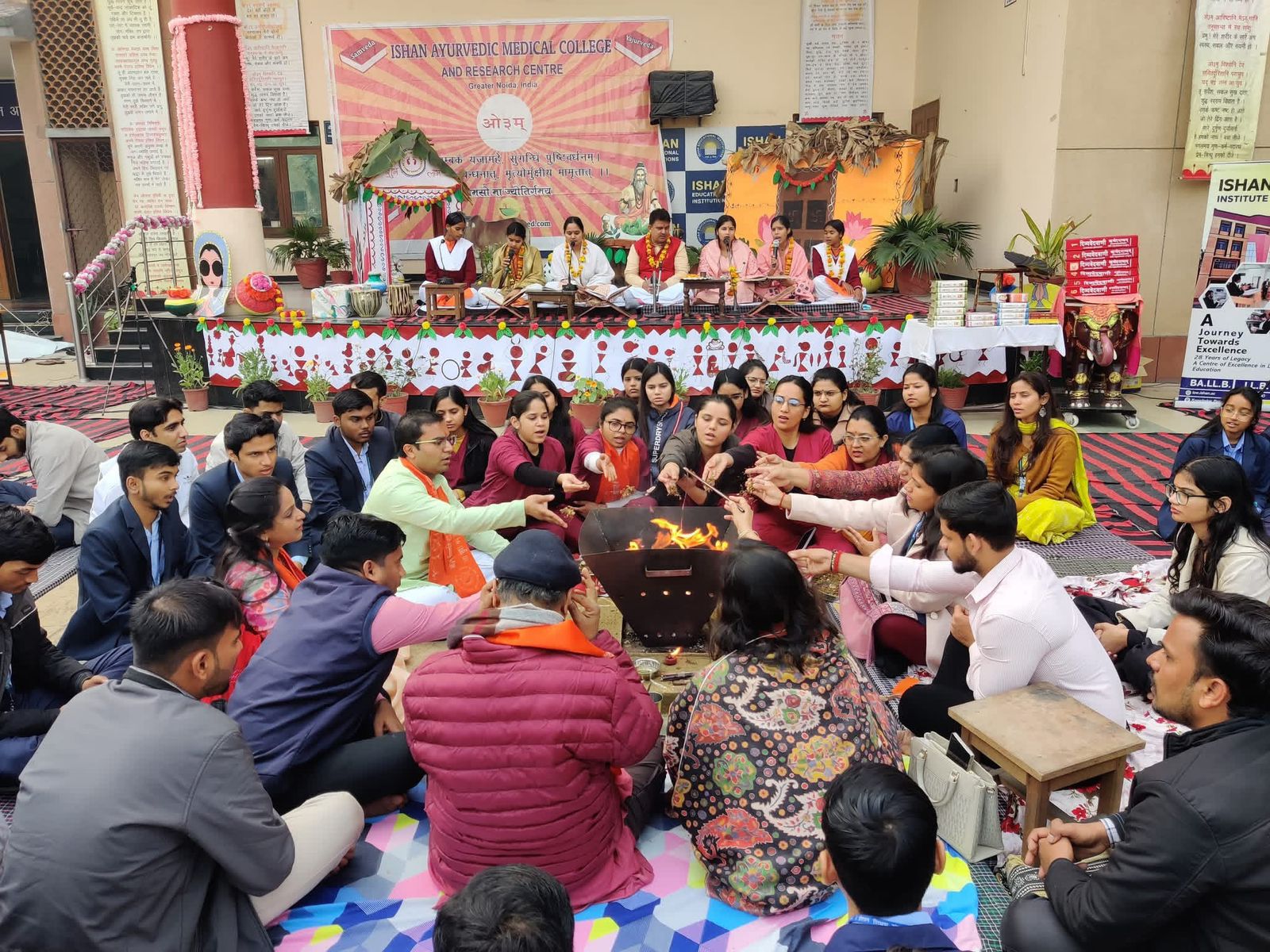 यज्ञ का शुभारंभ वैदिक मंत्रोच्चार के साथ प्रसिद्ध विद्वान डॉ जयेन्द्र आचार्य के मार्गदर्शन में हुआ। इस दौरान उन्होंने बताया की हवन सामग्री ऋतु एवं काल के अनुसार ही होनी चाहिए। जिसमे सूक्ष्म जीवाणु समाप्त होते हैं तथा फसल अच्छी होती है। वेद मंत्रों की गूंज से पूरा परिसर आध्यात्मिक वातावरण में सराबोर रहा। यज्ञ का मुख्य उद्देश्य विद्यार्थियों में भारतीय संस्कृति, नैतिक मूल्यों एवं आध्यात्मिक चेतना का विकास करना है। इस अवसर पर संस्थान के चेयरमैन डॉ डीके गर्ग ने कहा कि सामवेद परायण महायज्ञ जैसे आयोजन हमारी सांस्कृतिक धरोहर को जीवित रखने का माध्यम हैं। इससे विद्यार्थियों में सकारात्मक ऊर्जा, अनुशासन एवं नैतिक मूल्यों का संचार होता है। उन्होंने कहा कि ईशान एजुकेशनल इंस्टीट्यूशन सदैव शिक्षा के साथ-साथ सांस्कृतिक एवं आध्यात्मिक विकास को भी समान महत्व देता है।