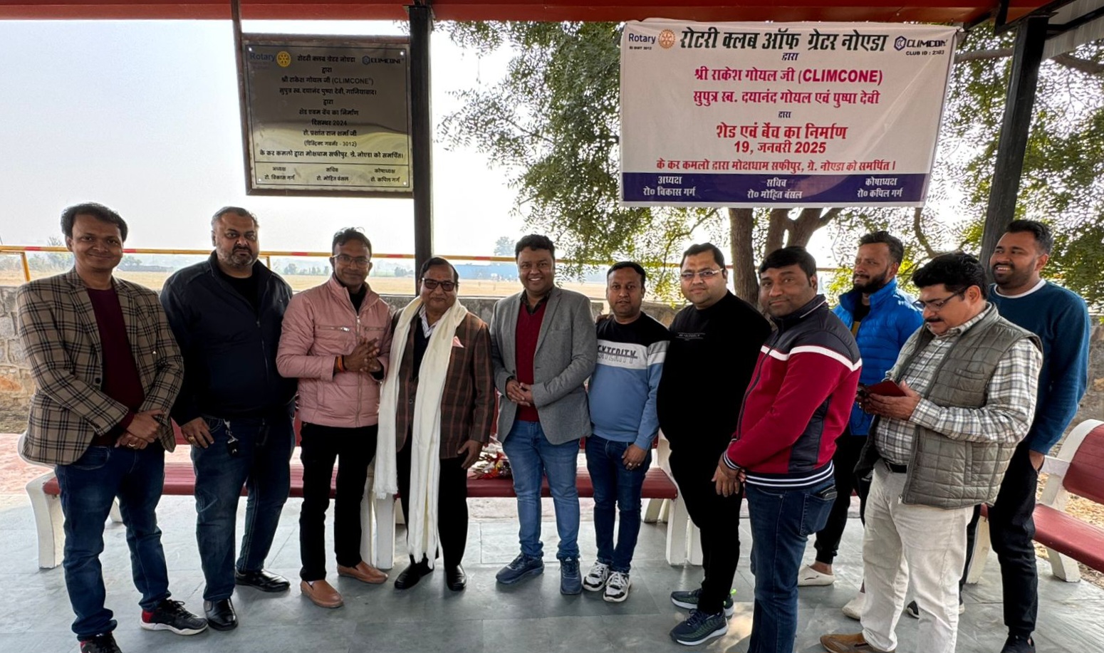 द न्‍यूज गली, ग्रेटर नोएडा:सफीपुर गांव के पास बने मोक्षधाम में अंतिम संस्‍कार के दौरान आने वाले लोगों की सुविधा को देखते हुए रोटरी क्‍लब के द्वारा शेड व बेंच लगवाई गई। रोटरी क्लब के सदस्य रोटेरियन डॉक्टर अभिषेक गोयल व उनके पिता राकेश गोयल ने निर्माण कार्य कराया। बेंच पर जहां एक तरफ लोगों को बैठने की सुविधा मिलेगी वहीं दूसरी तरफ धूप व बारिश में लोग शेड के नीचे खड़े हो सकेंगे। रविवार को शेड का लोकार्पण अभिषेक गोयल, राकेश गोयल व रोटरी क्‍लब के सदस्‍यों के द्वारा किया गया। इस अवसर पर विकास गर्ग , कपिल गुप्ता ,मुकुल गोयल ,शुभम सिंघल ,मोहित बंसल ,विशाल तायल ,अशोक सेमवाल, अभिषेक गोयल ,विनय गुप्ता , आदित्य अग्रवाल ,अंकित अग्रवाल , सचिन शर्मा आदि सदस्‍य मौजूद थे।