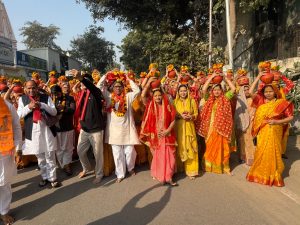 द न्यूज गली, ग्रेटर नोएडा: बीटा एक सेक्टर बी ब्लाक में स्थित राम जानकी में श्रीमद् भागवत महापुराण का आयोजन 11 से 18 दिसंबर तक होगा। स्वामी ब्रह्मानंद महाराज के द्वारा कथा कही जाएगी। कथा प्रतिदिन दिन में एक से शाम पांच बजे तक होगी। 18 दिसंबर को सुबह 9 बजे से हवन पूर्णाहुति के बाद भंडारे का आयोजन होगा। कथा आयोजन से पूर्व बृहस्पतिवार को सेक्टर में विशाल कलश यात्रा निकाली गई। कलश यात्रा राम जानकी मंदिर से शुरू होकर पूरे बीटा वन सेक्टर में घूमी। यात्रा में बड़ी संख्या में महिलाओं ने कलश उठाए और नाचते गाते यात्रा को सफल बनाया। रामजानकी मंदिर के संस्थापक विनोद कसाना ने धार्मिक आयोजन में सम्मिलित होने का निवेदन किया।