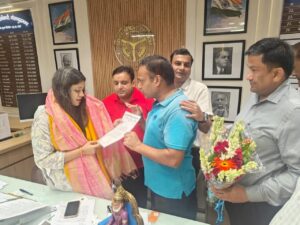 द न्यूज गली, ग्रेटर नोएडा: श्री महाराजा अग्रसेन वैश्य सेवा समिति, ग्रेटर नोएडा के पदाधिकारियों ने DM मेधा रुपम जी का स्वागत किया व उन्हें जन्माष्टमी कार्यक्रम के के आमंत्रित किया। इस अवसर पर वैश्य समाज के अध्यक्ष सौरभ बंसल ने बताया कि वैश्य समाज की बेटी द्वारा गौतमबुद्धनगर के जिलाधिकारी पद को सुशोभित करना समाज के लिए गौरव की बात है। समाज की खुशी से उन्हें अवगत कराने के उद्देश्य से आज समाज के एक प्रतिनिधिमंडल ने उनसे मुलाकात कर उन्हें अंगवस्त्र, गुलदस्ता व महाराजा अग्रसेन की प्रतिमा भेंट कर उनका स्वागत किया।